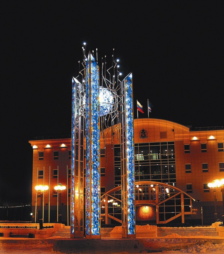 Первый городской фонтан на территории Полярного круга "Парус" был изготовлен авторским коллективом Екатеринбургского художественного фонда в 2005 г. и установлен в г.Новый Уренгой ЯНАО.